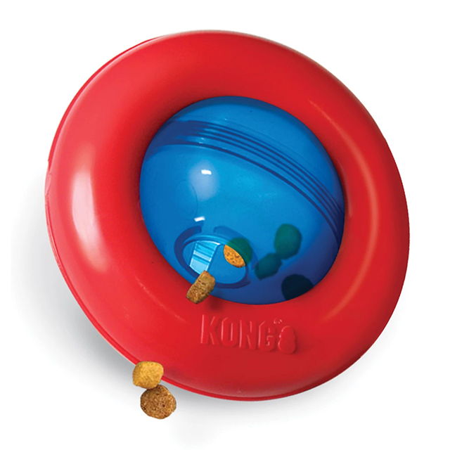 Butters loves the KONG Gyro Ball because it lets him turn his energy and curiosity into a job, batting it around and chasing it as it spins and dispenses treats. It keeps his busy brain working and gives Dayana a way to channel all that puppy chaos into focused play.