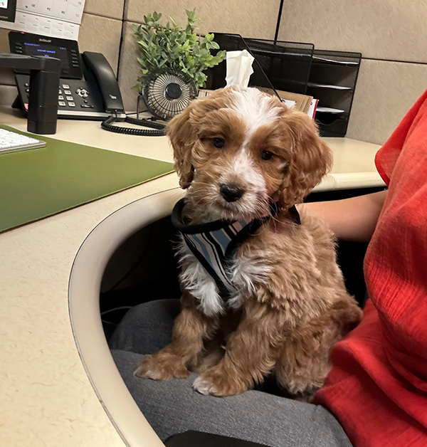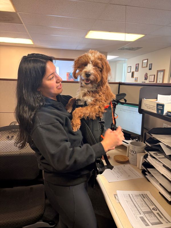 He loves meeting new people and dogs, and his favorite game is “catch me if you can” after he steals another dog’s toy and takes off. That playful, slightly mischievous streak is part of what makes him so fun to be around. Around the office, Butters is a true favorite. He has a knack for wandering by desks, making eye contact, and convincing people that it is time to stop working and start playing instead. When Butters shows up, productivity drops a little, but morale goes way up.